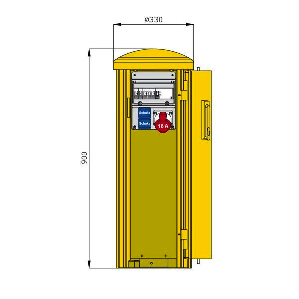 | Kurzbeschreibung | Pollersäule mit RCD TypA, 3 LS, einem CEE-Abgang 16A und 2 Schukos |