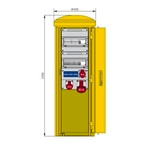 | Kurzbeschreibung | Pollersäule mit 2 RCDs TypA, 5 LS, 3 CEE-Abgängen 16-63A und 3 Schukos |
