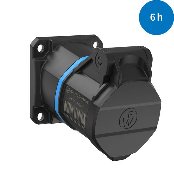 WALTHER CEE NEO Anbaudose schräg mit schraubenloser Anschlusstechnik (Käfigzugfeder-Technik) 16A 3P 6h 230V IP54 mit Farbringcodierung "blau" Gehäuse aus PA6-Material mit hoch wärmebeständigem Kontaktträger aus PA66-Material Schutz gegen direktes Berühren nach DGUV V3Flanschmaß 60x60mmBefestigungsmaß 47x47mm