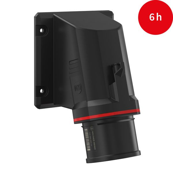WALTHER CEE NEO Anbaugerätestecker schräg mit schraubenloser Anschlusstechnik (Käfigzugfeder-Technik) 32A 5P 6h 400V IP54 mit Farbringcodierung "rot" Gehäuse aus PA6-Material mit hoch wärmebeständigem Kontaktträger aus PA66-Material Schutz gegen direktes Berühren nach DGUV V3Flanschmaß 115x115mmBefestigungsmaß 98x72mm