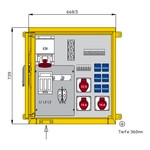 | Kurzbeschreibung | Aufputzverteiler 55kVA mit 2 RCDs TypA, 9 LS, 4 CEE-Abgänge 16-63A und 6 Schukos |