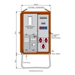 | Kurzbeschreibung | Anschlussverteilerschrank 44kVA mit RCD TypA, 6 LS, 3 CEE-Abgänge 16-32A, 1x Typ25 und 2x Typ23 |