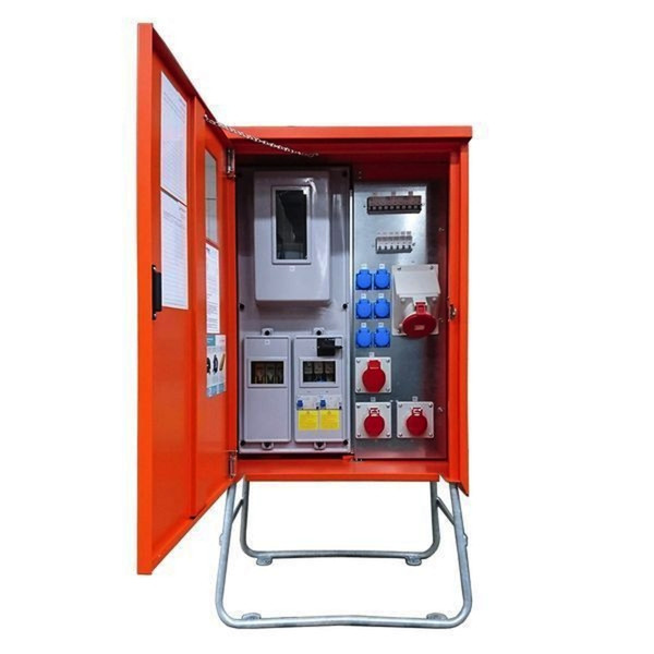 | Kurzbeschreibung | Anschlussverteilerschrank 44kVA mit Zählerplatz, 2 RCDs TypB, 4 CEE-Abgänge 16-63A und 6 Schukos |