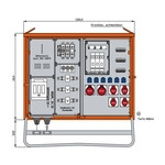 | Kurzbeschreibung | Anschlussverteilerschrank 111kVA mit Wandlermessung, 3 RCDs Typ B, 10 LS, 6 CEE-Abgänge 16-63A und 6 Schukos |