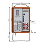 | Kurzbeschreibung | Anschlussverteilerschrank für Container 44kVA mit Zählerplatz, 2 RCDs TypB, 4 CEE-Abgänge 32A und 3 Schukos |