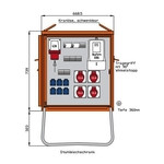 | Kurzbeschreibung | Endverteiler 44kVA mit Anbaugerätestecker 63A, DS-Zähler, RCD Typ B und RCD Typ A, 10 LS, 4 CEE-Abgang 16-32A und 6 Schukos |