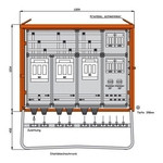 Sicherungslasttrennschalter 4 x NH00/ 1x NH1/NH2 WALTHER Gruppenverteilerschrank Anschlussleistung: 277kVA nach IEC61439-4 Gehäuse (H30) aus elektrolytisch-verzinktem Stahlblech mit schwermetallfreier Kunststoff-Lackierung Farbe: RAL 2004 -reinorange- mit Kranösen mit Doppeltür und 3-Punkt Stangenschloss mit Drehknauf und Vorrichtung für Vorhängeschloss inkl. feuerverzinktem Untergestell mit Ösen für Erdnägel Einbauten im Isolierstoffgehäuse Schutzart : IP 44 Größe ca.: 1034 x 1359 x 390mm / H-B-T + Untergestell-Höhe ca.: 452mm Anschluss: 1 NH2-Sicherungslasttrennschalter 400A mit Bolzenanschluss M10 1 CU-Sammelschienensystem 400A Abgang / Absicherung: 1 NH2-Sicherungslasttrennschalter 355A mit Bolzenanschluss M10 1 NH1-Sicherungslasttrennschalter 250A mit Bolzenanschluss M10 2 NH00-Sicherungslasttrennschalter 100A mit je 1 Bügelklemme 10-50qmm 2 NH00-Sicherungslasttrennschalter 100A mit je 1 Reihenklemme bis 35qmm