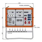 | Kurzbeschreibung | Beleuchtungsverteiler 44kVA mit RCD Typ B und 2 RCDs Typ A, digitale Zeitschaltuhr, 3 H-O-A-Schalter, 14 LS, 3 CEE-Abgänge 16-32A und 6 Schukos |
