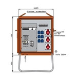 | Kurzbeschreibung | Verteilerschrank 44kVA mit RCD Typ B und RCD Typ A, 9 LS, 3 CEE-Abgänge 16-32A und 6 Schukos |