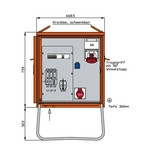 | Kurzbeschreibung | Verteilerschrank 44kVA mit 2 RCDs Typ B, 2 LS, 2 CEE-Abgänge 32-63A und eine Schuko |