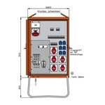 | Kurzbeschreibung | Verteilerschrank 55kVA mit 2 RCDs Typ B, 12 LS, 6 CEE-Abgänge 16-63A und 6 Schukos |