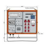 | Kurzbeschreibung | Verteilerschrank 173kVA mit 4 RCDs Typ B und 2 RCDs Typ A, 12 LS, 9 CEE-Abgänge 16-125A und 6 Schukos |