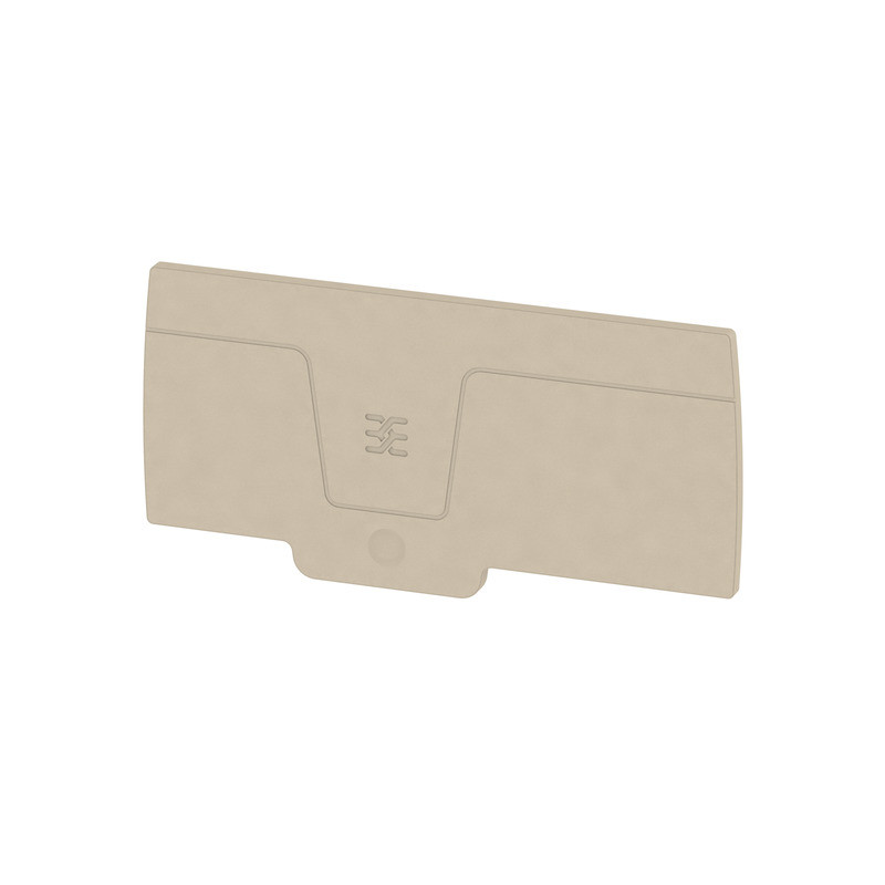 Abschlussplatte für den Berührungsschutz an spannungsführenden Teilen von Reihenklemmen. Die Abschlussplatte wird auch zur optisch erkennbaren Trennung von Stromkreisen eingesetzt, um Verdrahtungsfehler zu vermeiden.