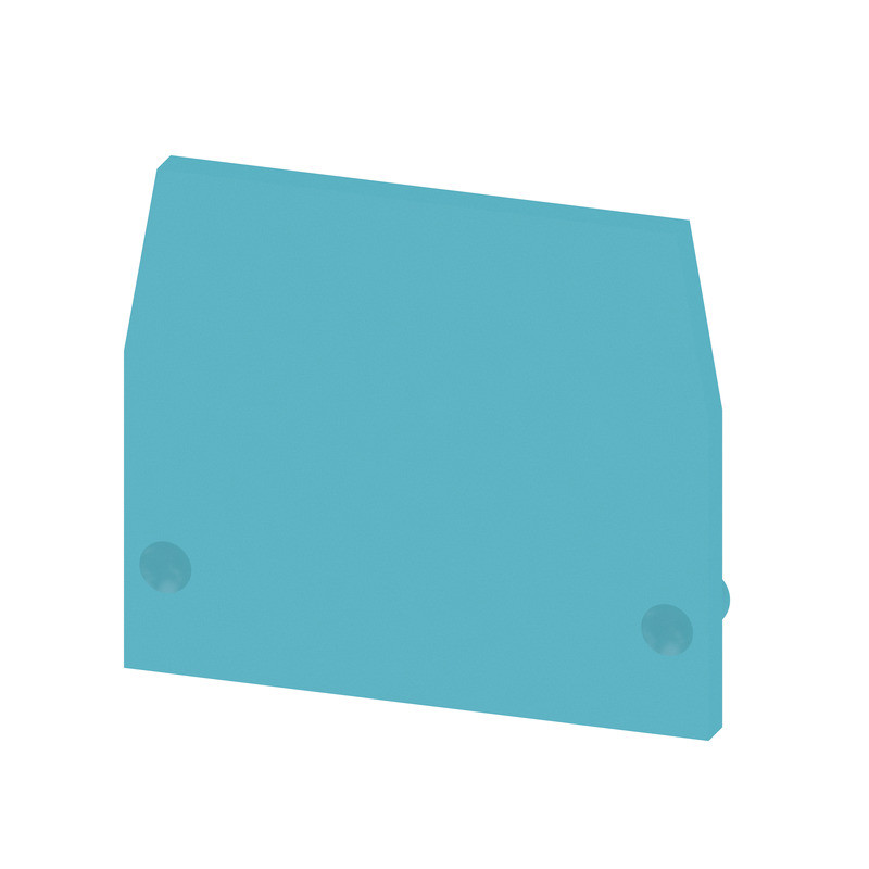 Abschlussplatte für den Berührungsschutz an spannungsführenden Teilen von Reihenklemmen. Die Abschlussplatte wird auch zur optisch erkennbaren Trennung von Stromkreisen eingesetzt, um Verdrahtungsfehler zu vermeiden.