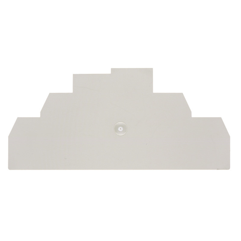 Abschlussplatte für den Berührungsschutz an spannungsführenden Teilen von Reihenklemmen. Die Abschlussplatte wird auch zur optisch erkennbaren Trennung von Stromkreisen eingesetzt, um Verdrahtungsfehler zu vermeiden.