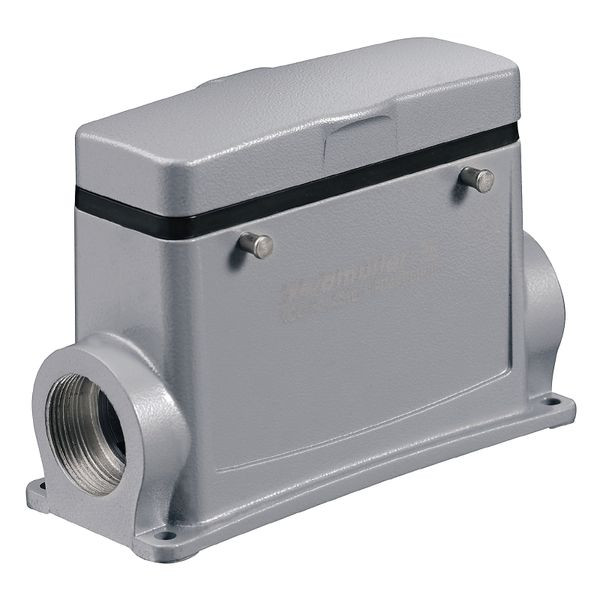 | Kurzbeschreibung | Gehäuse Industriesteckverbinder, Sockelgehäuse, Querbügel am Oberteil, Baugröße: 8, IP65, im gestecktem Zustand |