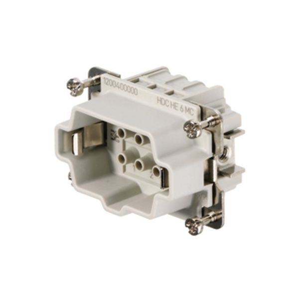 | Kurzbeschreibung | Kontakteinsatz (Industriesteckverbinder), Stift, 500 V, 24 A, Polzahl: 6, Crimpanschluss, Baugröße: 3 |