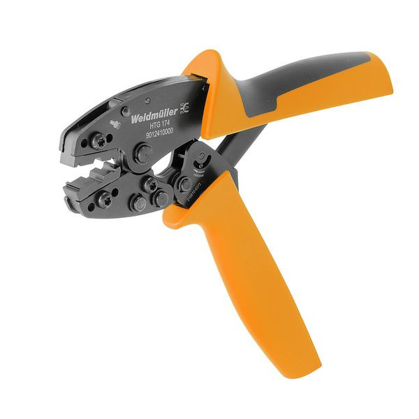 Werkzeug für das Vercrimpen von Aderendhülsen, Kontakten oder Kabelschuhen an abisolierten Leitern.