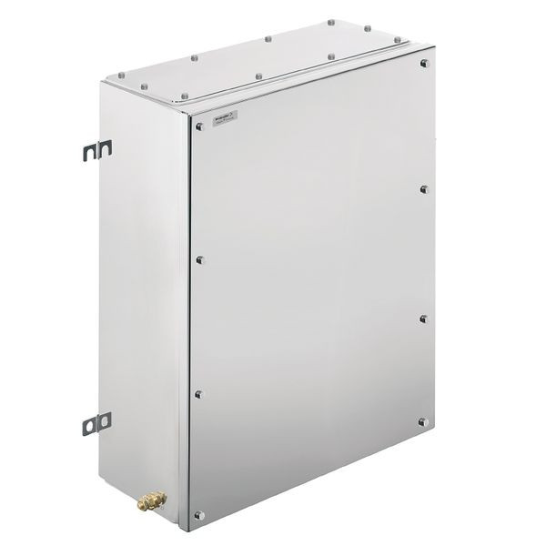 | Kurzbeschreibung | Ex-Metallgehäuse, 450 x 620 x 150 mm, elektropoliert, Flanschplatte: Ja, unten, M6 Sechskantschlitzschrauben SW10 |