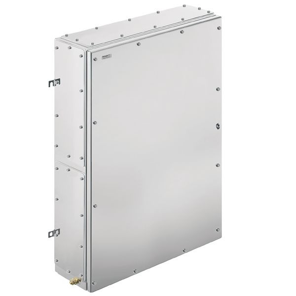 Gehäuse aus Metall für den Einsatz in explosionsgefährdeten Bereichen. Die Montagebohrungen befinden sich außerhalb des Dichtigkeitsbereichs. Eine Wandmontage kann durch Befestigungslöcher oder mit Montagefüßen realisiert werden.