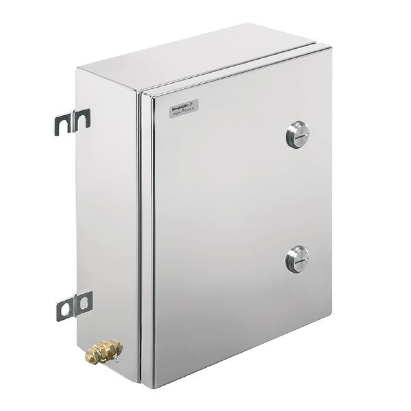 | Kurzbeschreibung | Ex-Metallgehäuse, 260 x 350 x 150 mm, elektropoliert, Flanschplatte: Ja, unten, oben, links, rechts, Vierteldrehverschluss mit Schlitzeinsatz |