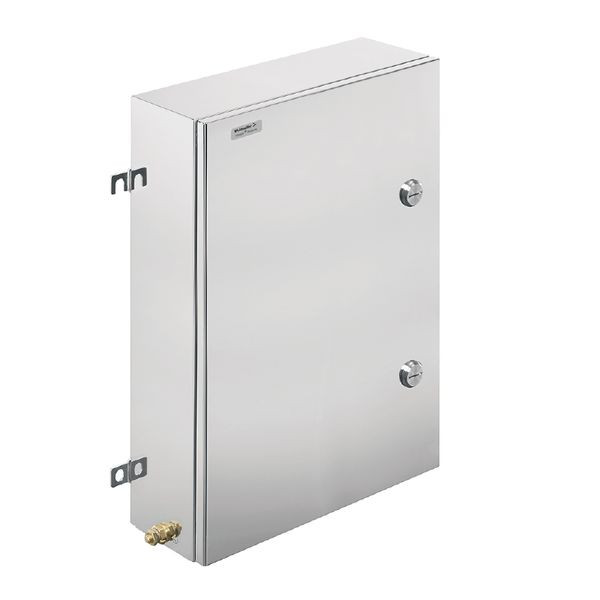| Kurzbeschreibung | Ex-Metallgehäuse, 350 x 550 x 150 mm, elektropoliert, Flanschplatte: Ja, unten, Vierteldrehverschluss mit Schlitzeinsatz |