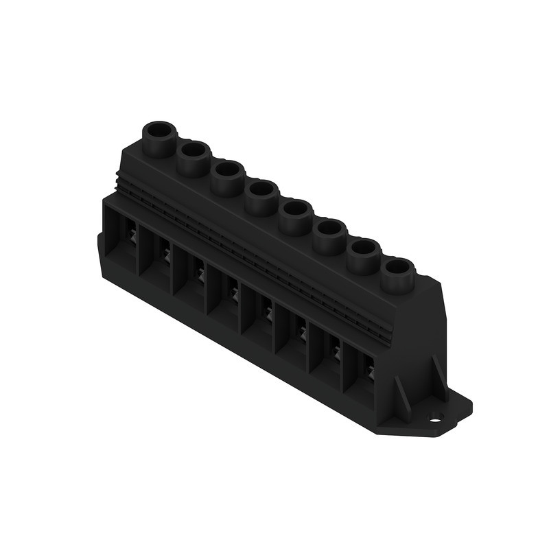 | Kurzbeschreibung | Leiterplattenklemme, 1000 V, 150 A, Raster in mm: 15.00, 50 mm², Polzahl: 8, Zugbügelanschluss, THT-Lötanschluss, 90°, Box |