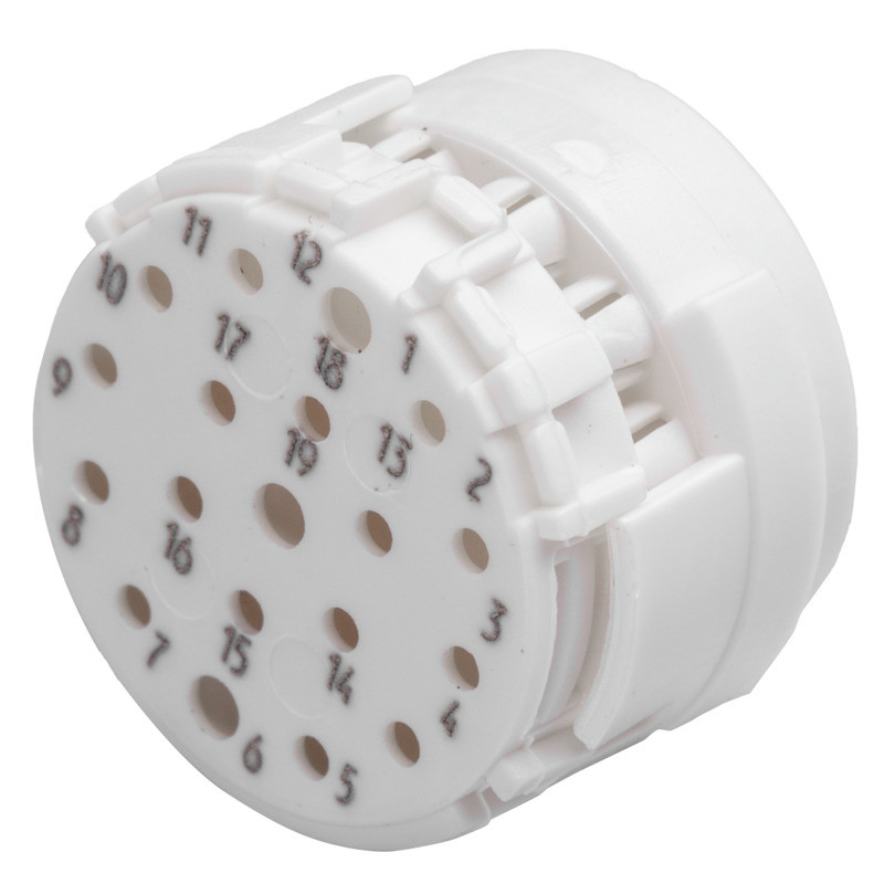 Kontakteinsatz für Rundsteckverbinder zum Einbau in ein Gehäuse.