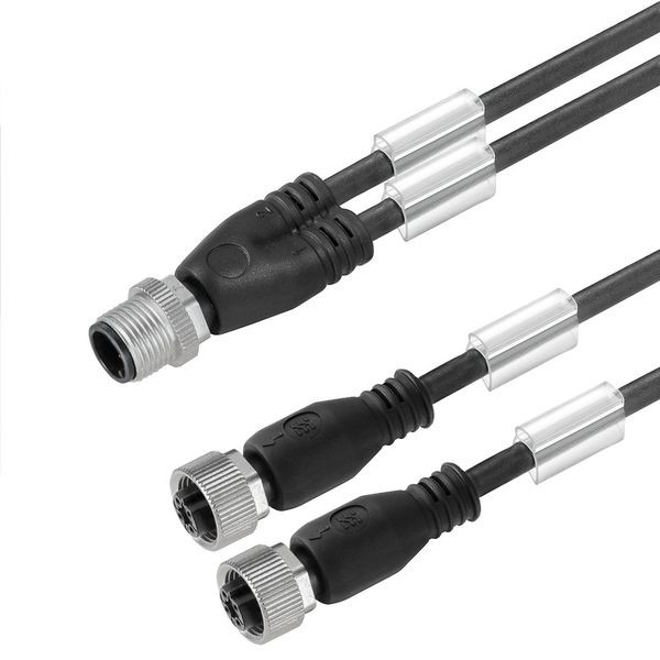 | Kurzbeschreibung | Sensor-Aktor-Adapterleitung (konfektioniert), Verbindungsleitung, M12 / M12, 3, 3 m, Zwillingsleitung, Stift, gerade, 2x Buchse, gerade, schwarz |