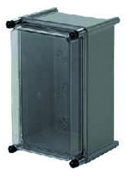 Technische Daten: Kunststoffgehäuse, 186 x 302 x 175 mm, glasfaser-verstärktes Polyester, platingrau, transparent