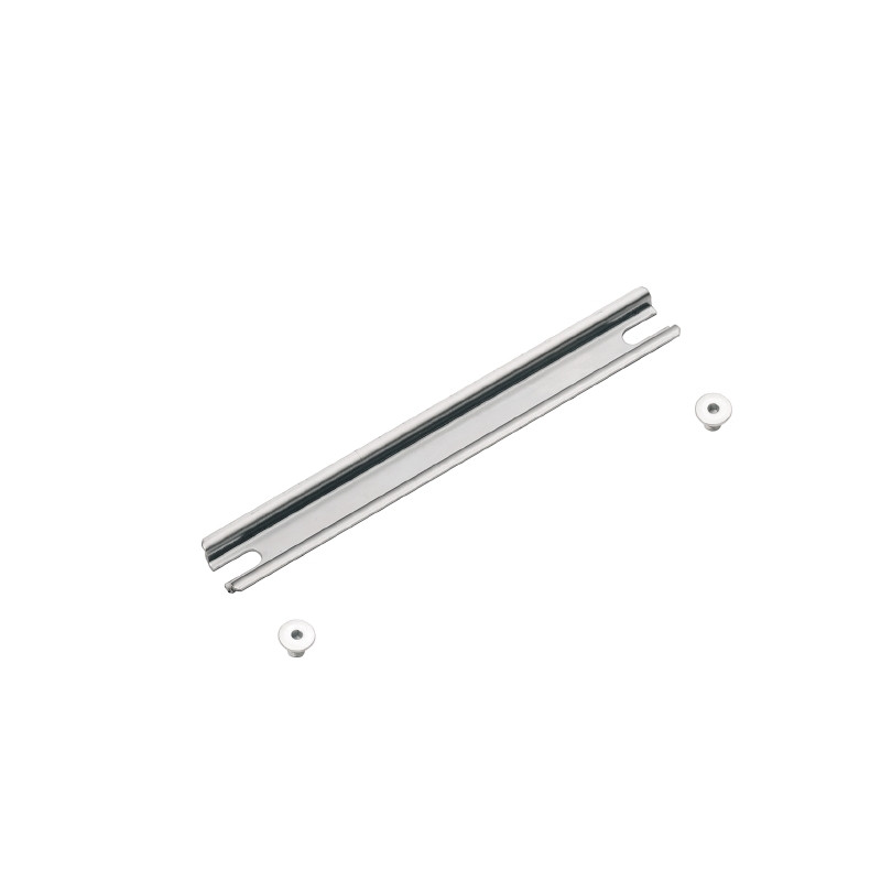 Profilschiene aus Metall für die Aufnahme elektrischer Betriebsmittel. Die Tragschiene wird in ein Gehäuse, einen Anschlusskasten, einen Schaltschrank oder eine ähnliche Vorrichtung montiert.