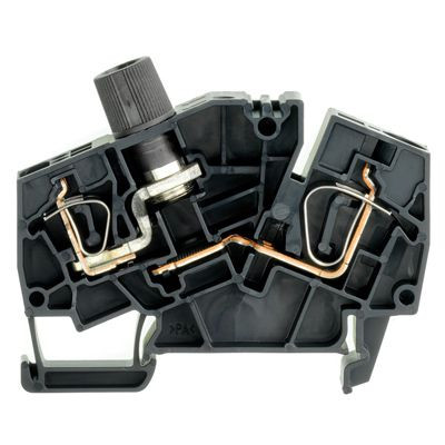 Reihenklemme zum Anschließen oder Verbinden von Leitern mit dauerhaft sicherem Kontakt. Gehärteter Stahl hält den mechanischen Kräften stand, Zinn-beschichtetes Kupfer sorgt für beste Leitfähigkeit. Mit herausnehmbarem Träger für einen Sicherungseinsatz.