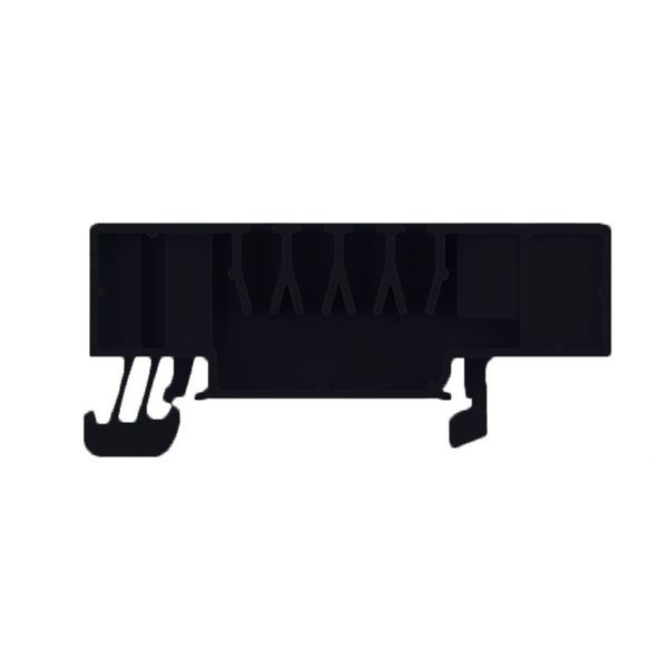 Ein Sammelträger wird auf Tragschienen aufgerastet und dienen als Träger von Klemmenzubehör.