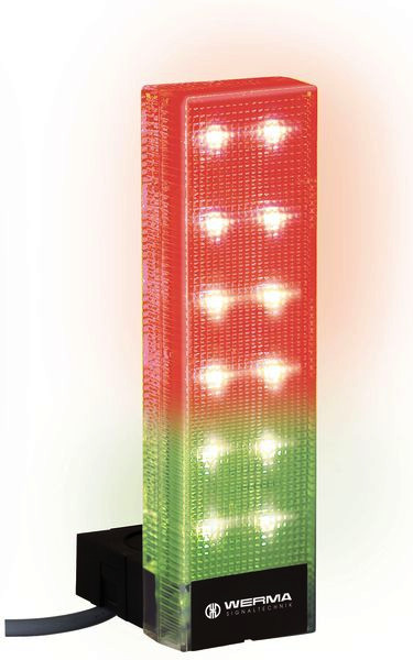 LED-Signalsäule mit Dauerlicht in rot, gelb und grün Komplette Ausleuchtung des Leuchtkörpers in einer Farbe möglich (fernansteurbar) Farbaufteilung kann per DIP-Schalter beliebig eingestellt und verändert werden 2-seitige Ausleuchtung