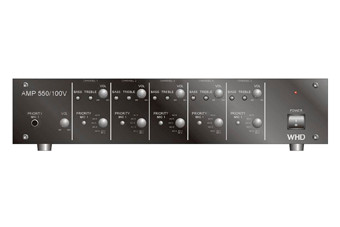 5-Zonen Verstärker mit einer Leistung von 5 x 50 W. Der AMP 550 ist vielseitig einsetzbar z.B. in Restaurants, Wellness-Bereichen, Shops, … Er eignet sich sowohl zum Anschluss von 100 V- als auch von 8 Ohm-Lautsprechern. Der AMP 550 bietet pro Zone die Auswahlmöglichkeit von jeweils einer aus 7 Tonquellen: Mikrofon 1, Mikrofon 2/Aux 1, Aux 2-Aux 6. Somit kann jeweils in einer Zone eine der 7 Tonquellen unabhängig von den anderen Zonen gehört werden.|Es ist weiterhin pro Zone einstellbar, ob das Mikrofon 1 Priorität haben soll oder nicht; spricht man in dieses Mikrofon, so werden alle anderen Tonquellen in den Zonen mit aktivierter Priorität stumm geschaltet und man hört nur die Durchsage des Mikrofon 1.|Er kann als Tischgerät verwendet oder in 19“-Racks geschraubt werden. Er ist für den Dauereinsatz bei Spannungen von 115V oder 230V (umschaltbar) vorgesehen.