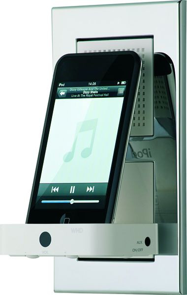 Wandhalter mit Verstärker und Ladefunktion für portable Musikplayer. Die Frontplatte des MP 55 UP ist 55 x 55 mm groß und passt in viele gängige Schalterprogramme. Der MP 55 UP kann mit dem Unterputz-Lautsprecher KEL 55 oder Lautsprechern mit einer Impedanz von min. 4 Ohm kombiniert werden. Mit dem Stereo Line-Out-Ausgang kann der MP 55 mit einem WHD-Multiroomsystem oder einer HiFi-Anlage verbunden werden. Der MP 55 verfügt über einen integrierten Infrarotempfänger und Tasten für die Lautstärkeregelung. Ein zusätzlicher AUX-Eingang mit Mini-Stereoklinke stellt den Anschluss an fast jede portable Audioquelle (Line- oder Kopfhörerausgang) her.Ausgangsspannung max: 3,5 V, Ausgangsimpedanz: 4 Ohm, Betriebsspannung: 230V, Einbautiefe: 36 mm