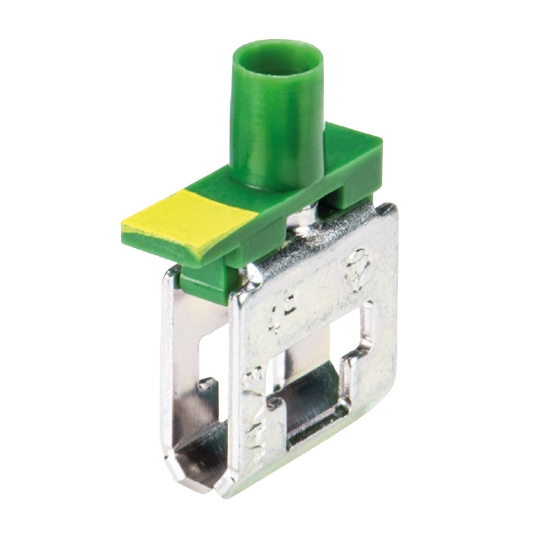 Aufreihbare N- und PE- Verteilerklemme, mit grün/gelber Kunststoffkappe, für Sammelschiene 10x3 und 6x6, Leiterquerschnitt: 4 mm²