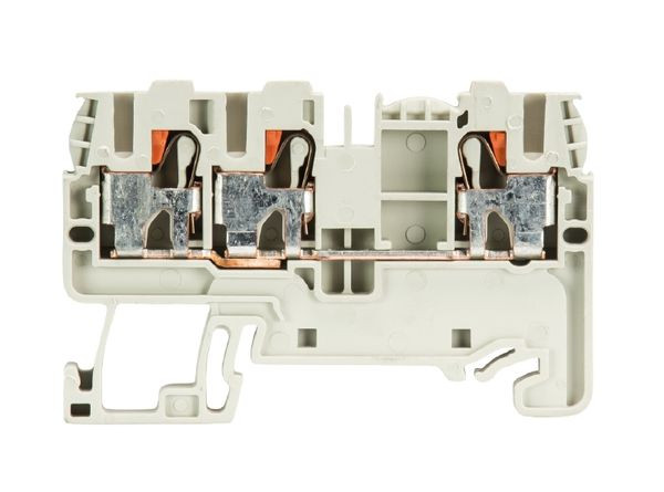 Durchgangsklemme mit Push-In Anschluss für die Montage auf TS 35, Nennquerschnitt: 2,5 mm², Baubreite: 5 mm, Farbe: grau
