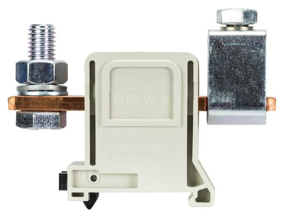 Durchgangsklemme mit Schraubanschluss für die Montage auf TS 35/7,5 mm,Nennquerschnitt: 95 mm², Baubreite: 32 mm, Farbe: grau