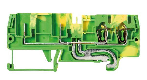 Schutzleiterklemme mit Federkraftanschluss für die Montage auf TS 35, Nennquerschnitt: 2.5 mm², Baubreite: 5 mm, Farbe: grün-gelb