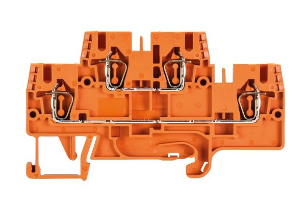 Etagenklemme mit Federkraftanschluss für die Montage auf TS 35, Nennquerschnitt: 2.5 mm², Baubreite: 5 mm, Farbe: orange