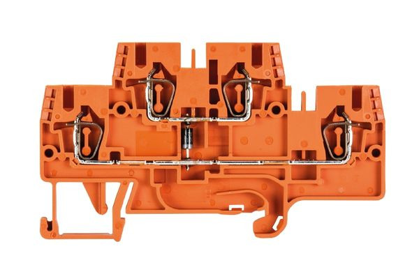 Etagenklemme mit Federkraftanschluss für die Montage auf TS 35, Nennquerschnitt: 2.5 mm², Baubreite: 5 mm, Farbe: orange