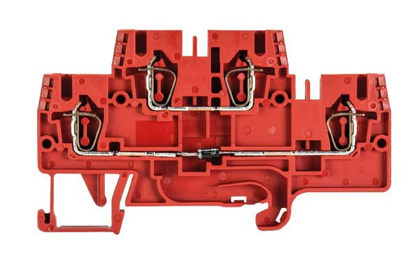 Etagenklemme mit Federkraftanschluss für die Montage auf TS 35, Nennquerschnitt: 2.5 mm², Baubreite: 5 mm, Farbe: rot