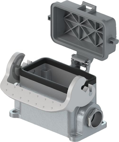 Gehäuseunterteil revos basic aus Aluminium, mit Einhandverriegelung mitSchutzdeckel und Kabelverschraubung M20 rechts und links (IP54), niedrige Bauform, 10-polig