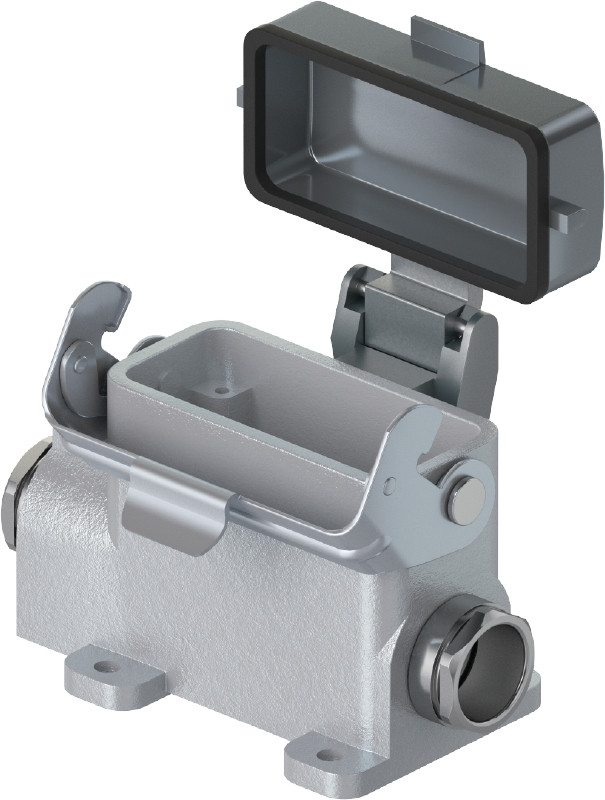 Gehäuseunterteil revos HD aus Aluminium, mit Einhandverriegelung mit Schutzdeckel und Kabelverschraubung M25 rechts und links (IP54), niedrige Bauform, 25-polig