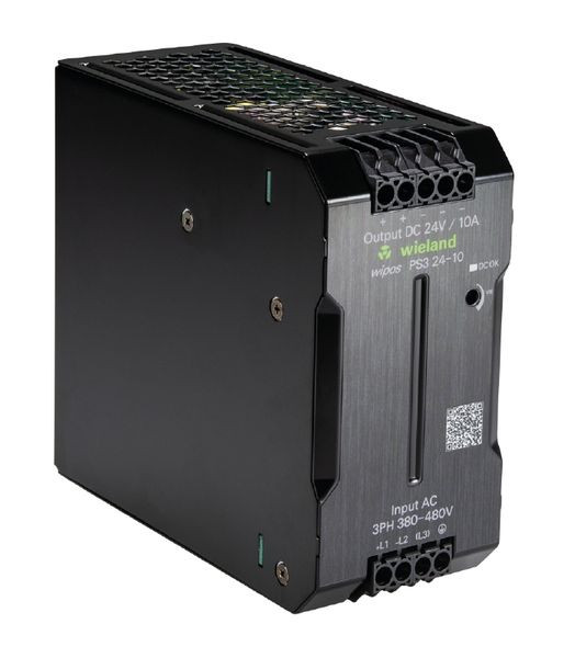wipos PS3 Schaltnetzteil, Ausgang: 24 V DC / 10 A (einstellbar 22,5-29,5 V DC), dauerkurzschlussfest, Eingang: 320-576 V AC; 450-810 V DC, dreiphasig, B x H x T: 60 × 125 × 150 mm