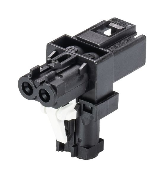 gesis® MINI T-Verteiler, ohne Befestigungsmöglichkeit, kaskadierbar, Polzahl 2, Bemessungsspannung 250 V, Bemessungsstrom 16 A, Anzahl der Eingänge 1, Anzahl der Ausgänge 2, Codierfarbe / Kontakteinsatz schwarz