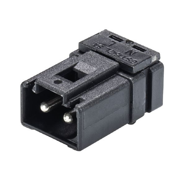 gesis® MINI Geräteanschluss, Lötteil, vertikal ohne Befestigungsflansch, Polzahl 2, Ausführung Stecker, Anschlussart Lötanschluss, Bemessungsspannung 250 V, Bemessungsstrom 16 A, Codierfarbe / Kontakteinsatz schwarz