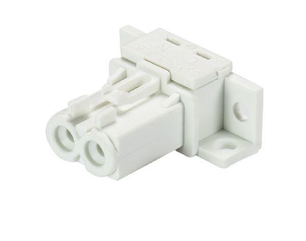 gesis® MINI Geräteanschluss, Lötteil, horizontal mit Befestigungsflansch, Polzahl 2, Ausführung Buchse, Anschlussart Lötanschluss, Bemessungsspannung 250 V, Bemessungsstrom 16 A, Codierfarbe / Kontakteinsatz weiß