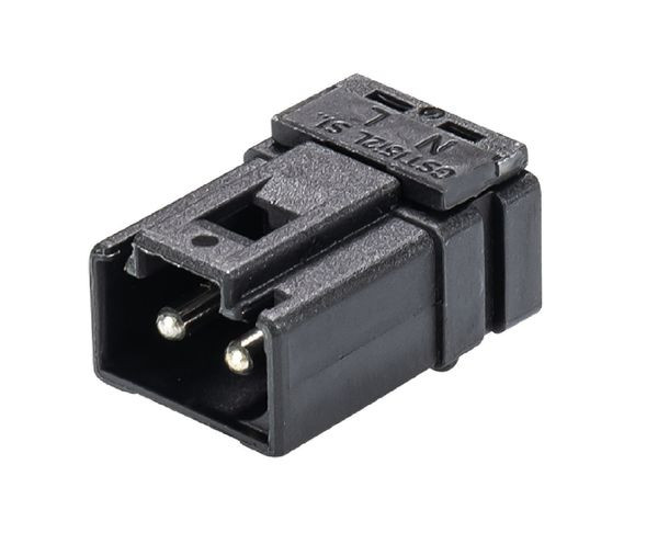 gesis® MINI Geräteanschluss, Lötteil, horizontal ohne Befestigungsflansch, Polzahl 2, Ausführung Stecker, Anschlussart Lötanschluss, Bemessungsspannung 250 V, Bemessungsstrom 16 A, Codierfarbe / Kontakteinsatz schwarz